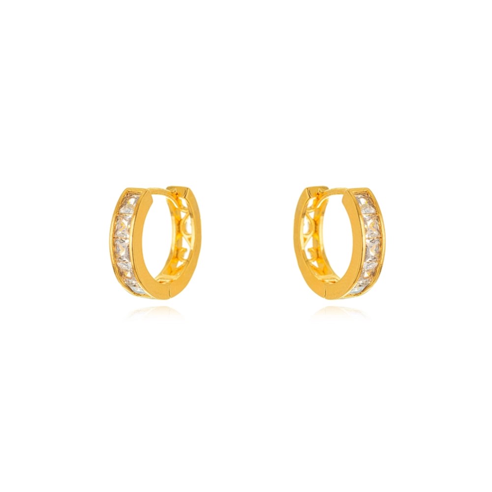 Brinco Argola Cristais Confeccionado em Banho de Ouro Amarelo 18K.