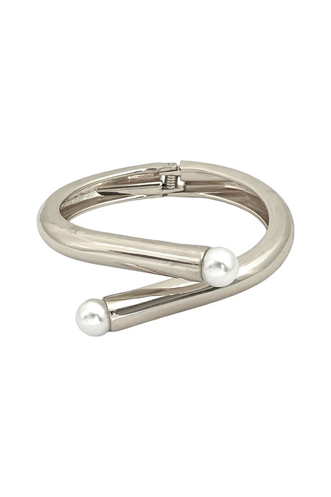 Bracelete com pérola acrílica em cada ponta, no banho prata.