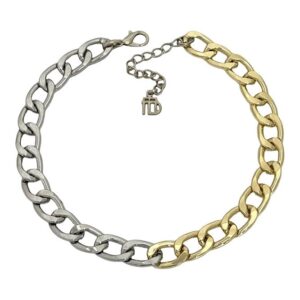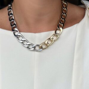 Colar corrente grumet, no banho mix de banhos prata e dourado.