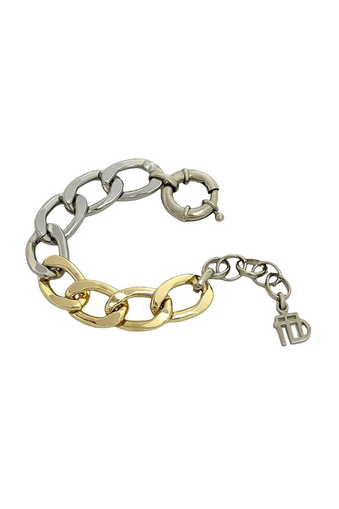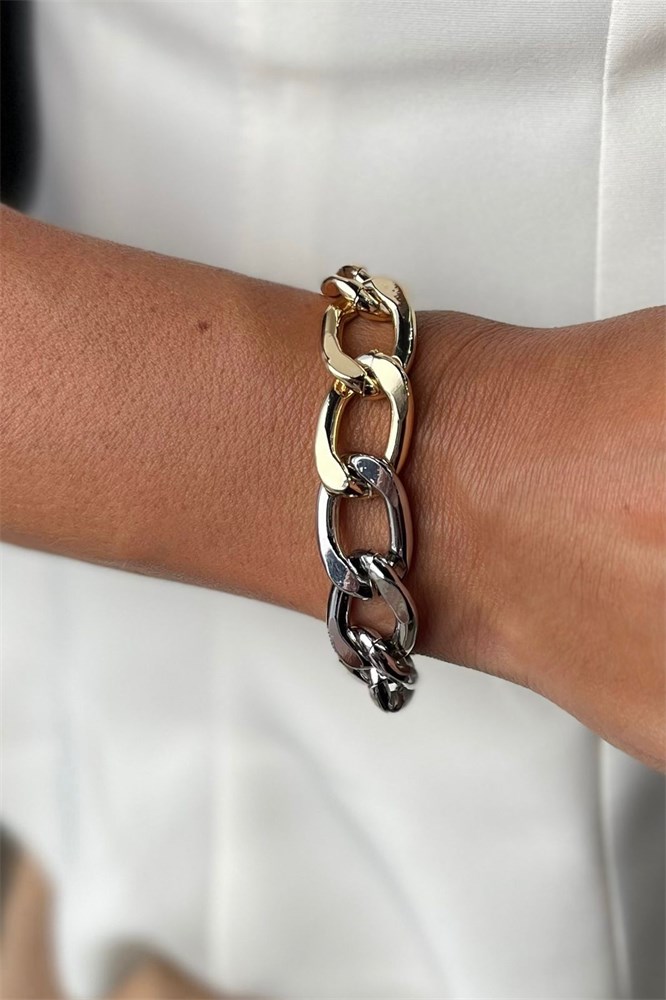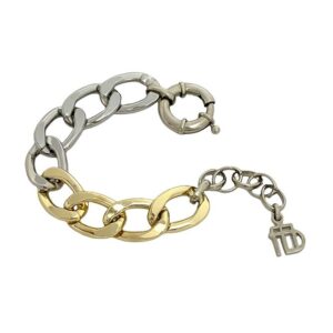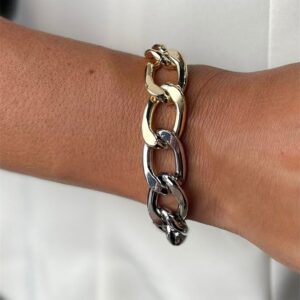 Pulseira corrente grumet, no mix de banhos prata e dourado.