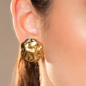 Brinco fixo com formato orgânico efeito amassado no banho ouro golden.