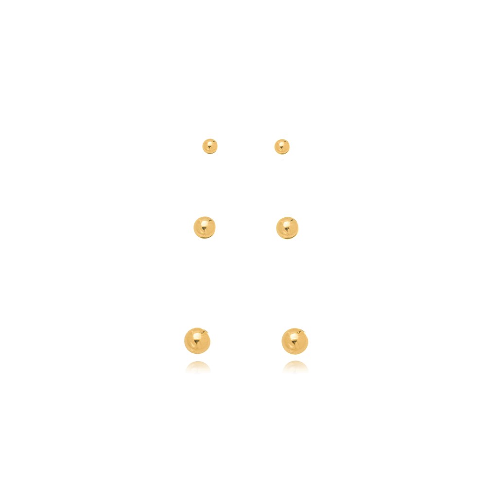 Brinco 3 Furos Bolas Lisas Confecciondo em Banho Ródio Branco.