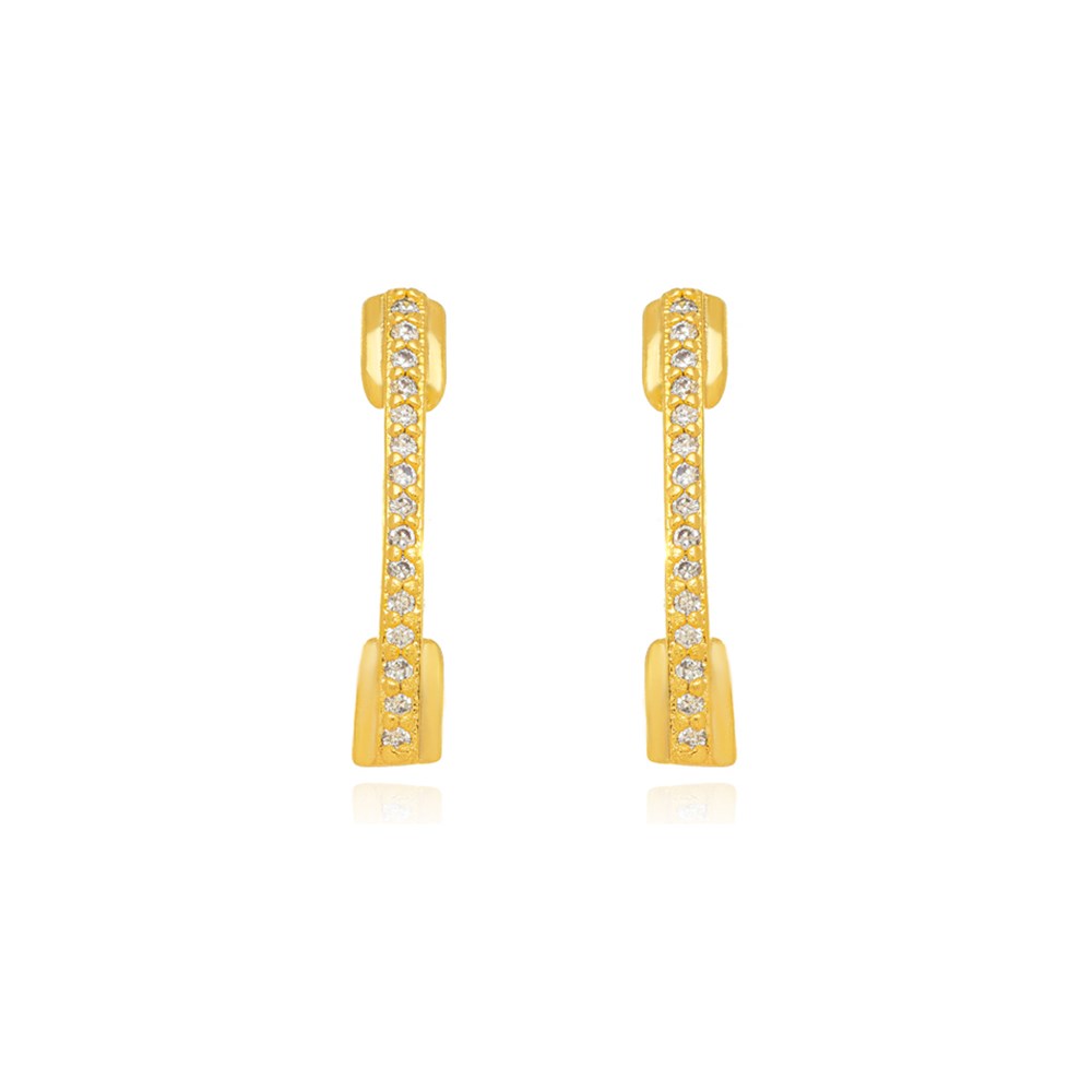 Brinco Zircônia Confeccionado em Banho de Ouro Amarelo de 18K.